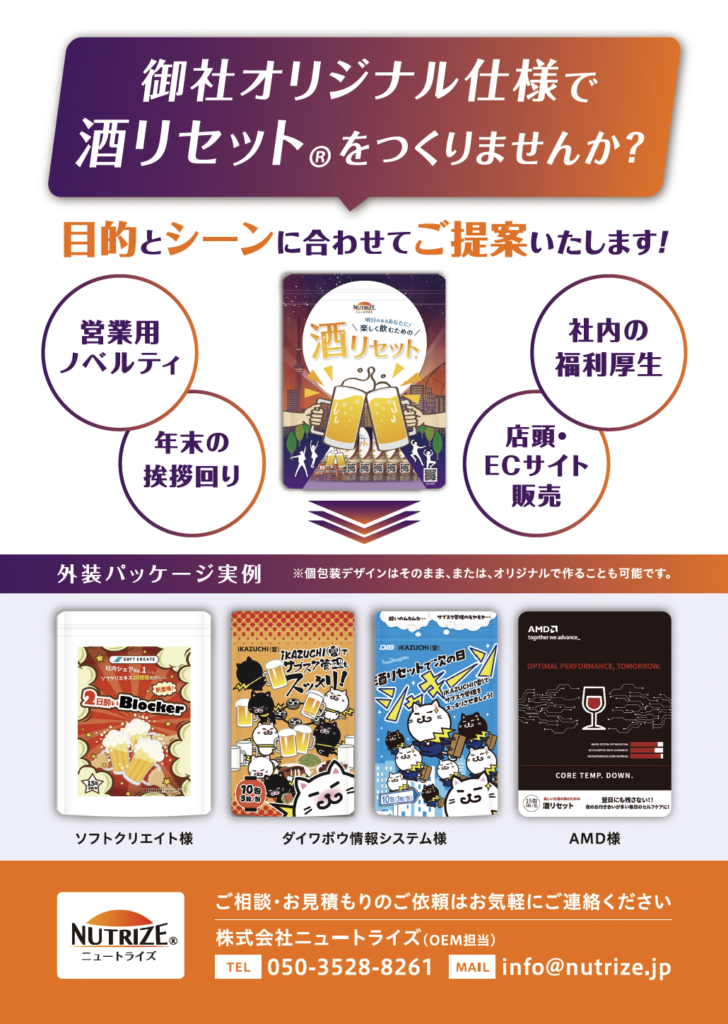 オリジナル仕様での「酒リセット®」OEM/PBに