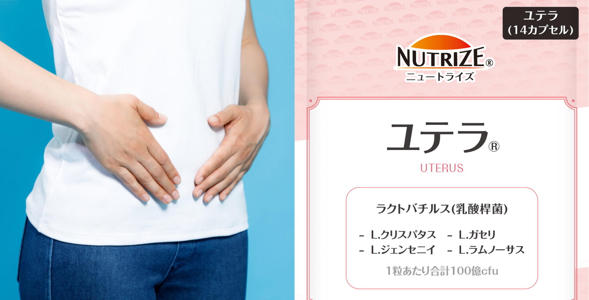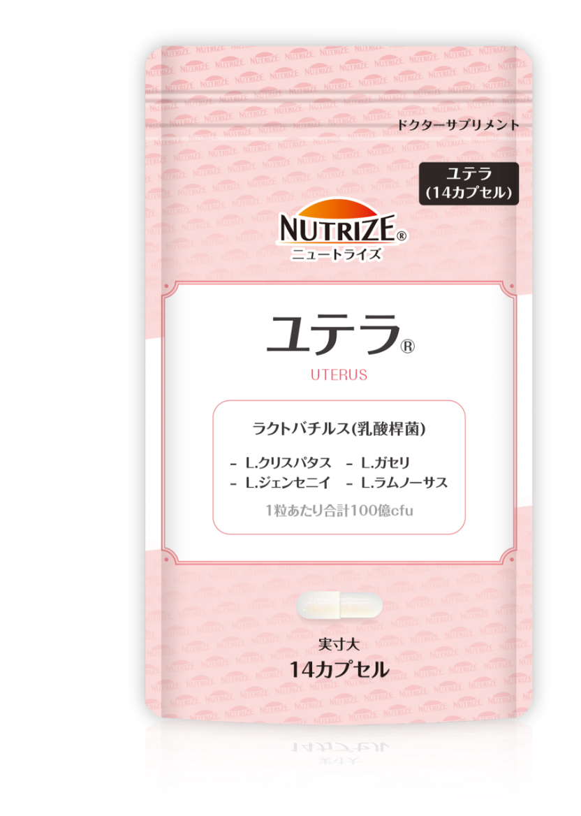 わたしたちは国産としては初めて健康な妊婦さんの※腟内から分離した生きたラクトバチルス(100億cfu)をカプセルに詰め込んだ製品「ユテラ」をご用意しました。これまでの主流であった糞便(腸)由来のラクトバチルスは使用しておりません。